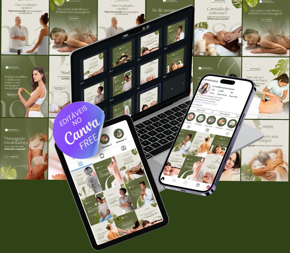 O Pack de Massoterapia foi criado especialmente para funcionar no Canva gratuito.